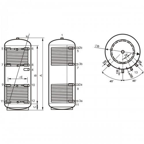 Concept - Rezervor de acumulare cu două serpentine 500 l/ 650 mm