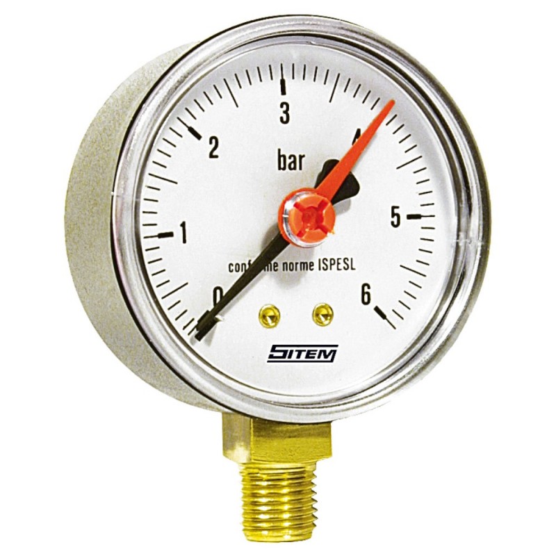 Manometru cu racord inferior SITERM MR 100 pretabil a fi instalat pe armături care necesită o clasă de precizie ridicată cum ar fi: supapele de siguranţă, reductoarele de presiune, regulatoare de presiune, vane automate, etc.