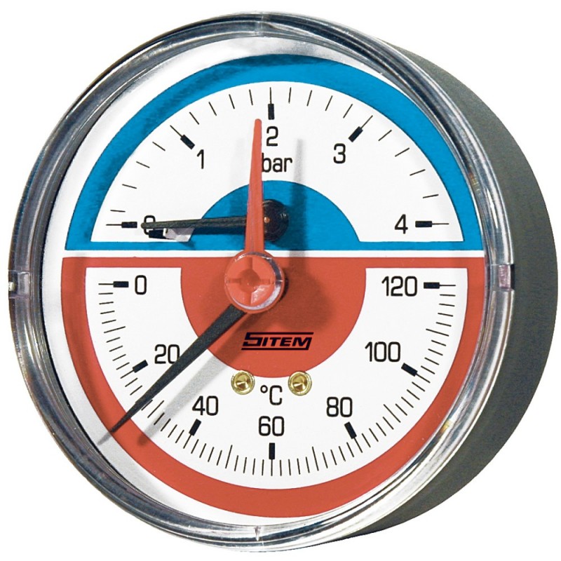 SITEM termomanometru cu închidere, cu racord axial posterior, Ø80 mm, 4 bar