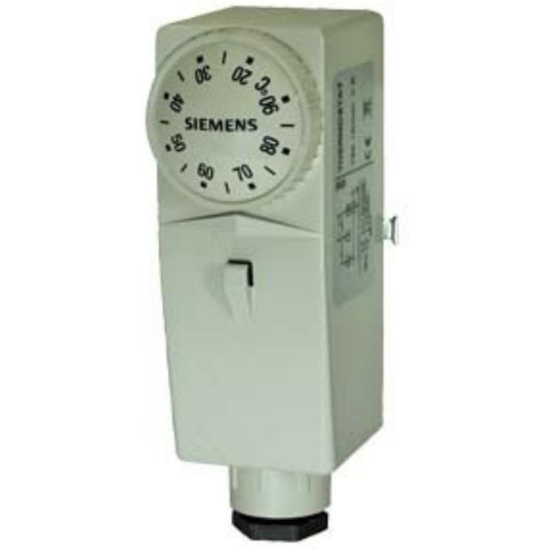Termostat de ţeavă SIEMENS pentru controlul şi limitarea temperaturii cu o poziţie de comutare, cu posibilitatea de montaj pe ţeavă sau pe rezervoare de acumulare. Utilizabil în instalaţii de încălzire, ventilaţie sau de răcire.