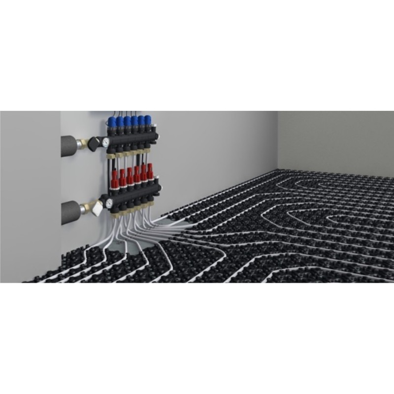 Pachet pentru încălzirea de pardoseală cu ţeavă Uponor PE-Xa 17x2.0 mm, cu placa cu nuturi preizolată de 11 mm grosime pentru 60 mp, 3 camere.