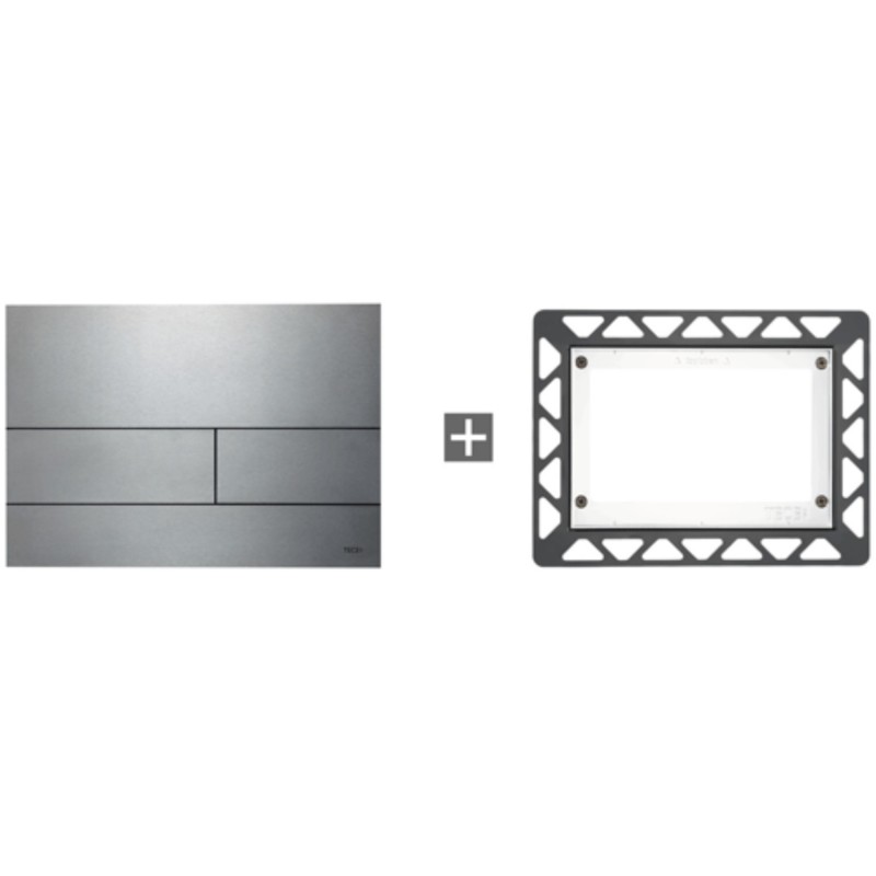 Ansamblu TECEsquare, avand rama şi cele două butoane realizate din oţel inox, finisaj alb, protejat anti- abraziv şi anti- amprentă.