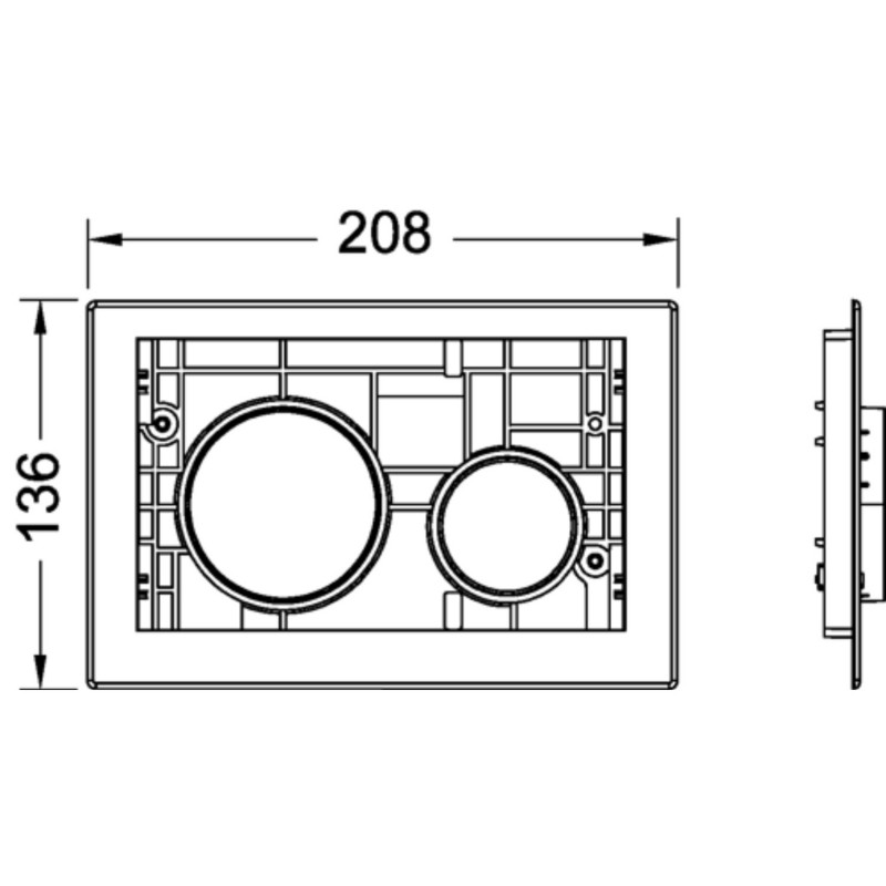 Placă de bază cu butoane de acţionare în două trepte, pentru sisteme de spălare tip WC utilizate în sistemul modular de clapete TECEloop. Configurarea sistemului poate fi făcută cu combinaţii între cele 8 modele de butoane de acţionare şi cele 12 modele în culori diferite ale plăcii frontale.