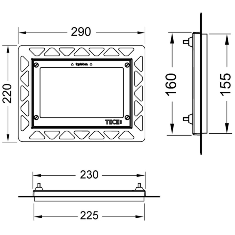 Ramă de montaj utilizabilă împreună cu clapetele de acţionare, pentru sisteme de spălare tip WC: TECEloop ‐ versiunile din sticlă şi TECEsquare pentru realizarea montajului încastrat în ceramica peretelui camerei de baie.