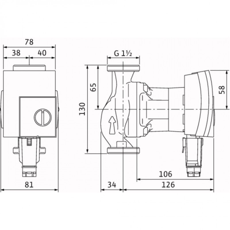 Pompă de recirculare cu rotor imersat cu racorduri filetate de 6/4”, l= 130 mm, motor rezistent la curentul de blocare şi reglaj electronic integrat.