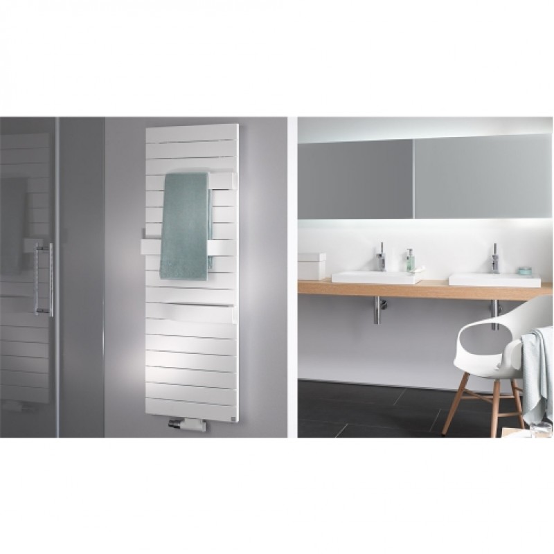 Radiator compact din tablă de oţel pentru funcţionare cu agent termic, mixt sau electric. În funcţie de înălţime cu 2 sau 3 suporturi pentru prosop.
