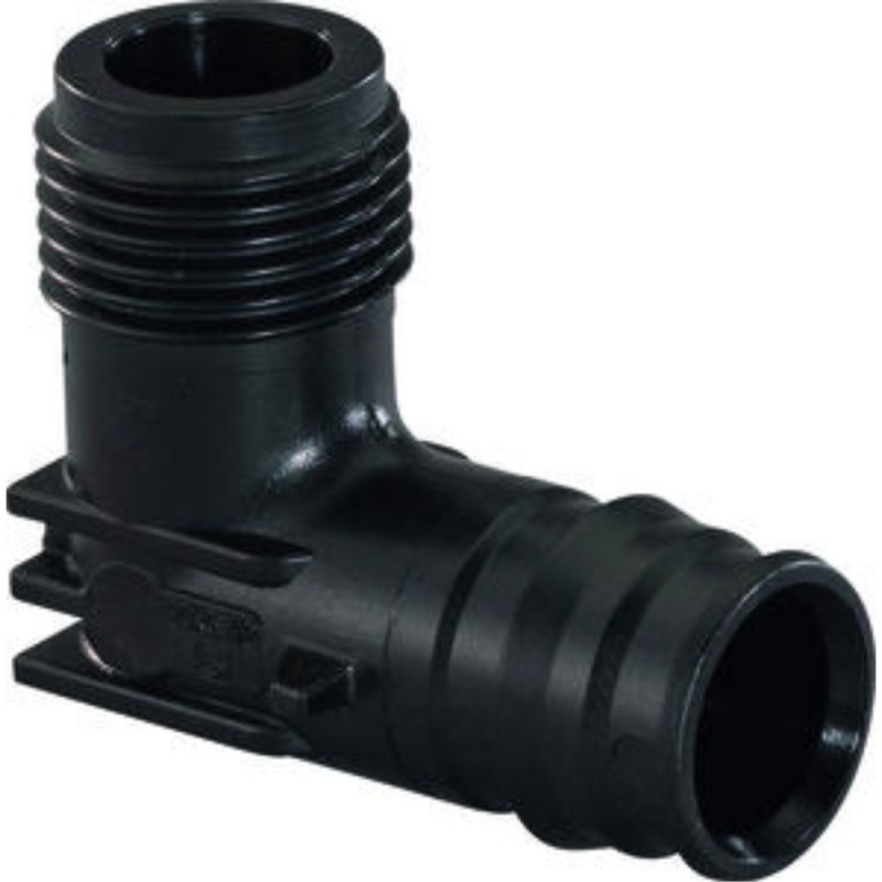 Cot la 90° cu filet exterior Uponor Quick & Easy confecţionat din material plastic polifenilsulfon (PPSU) pentru instalaţiile de alimentare cu apă (10 bar) sau de încălzire (6 bar).